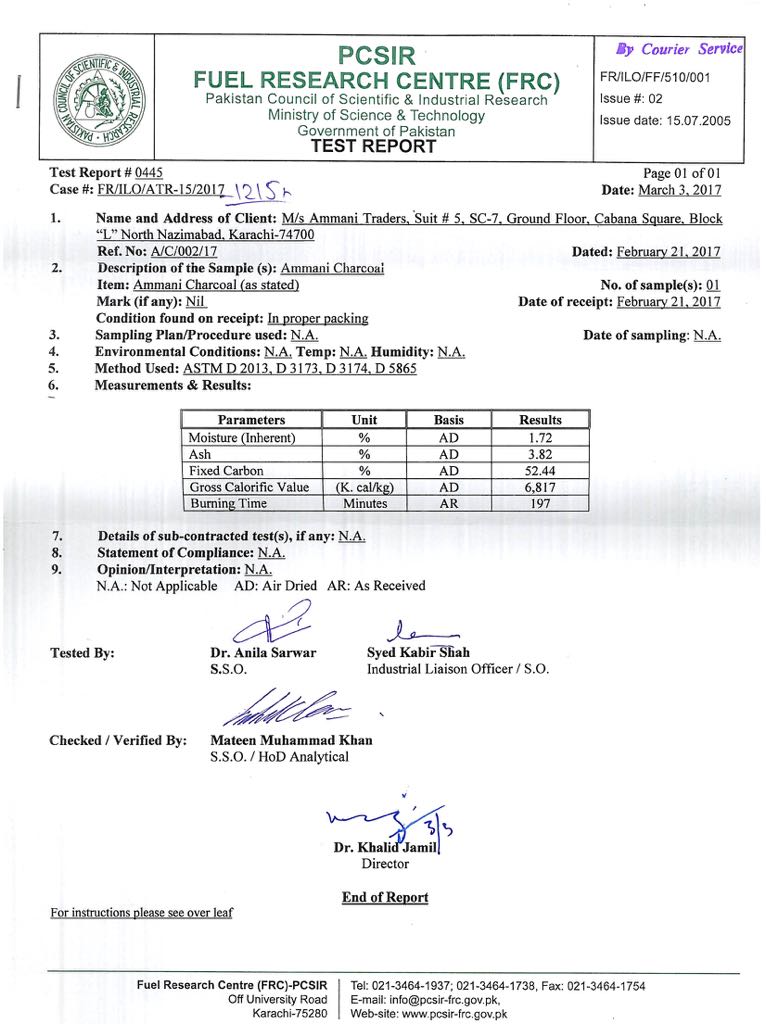 Charcoal Specification